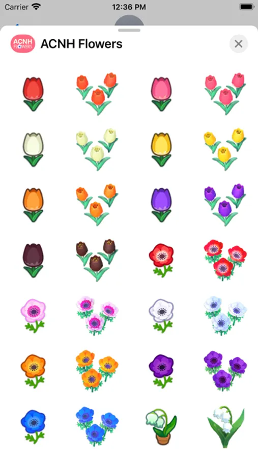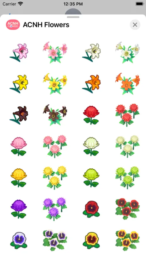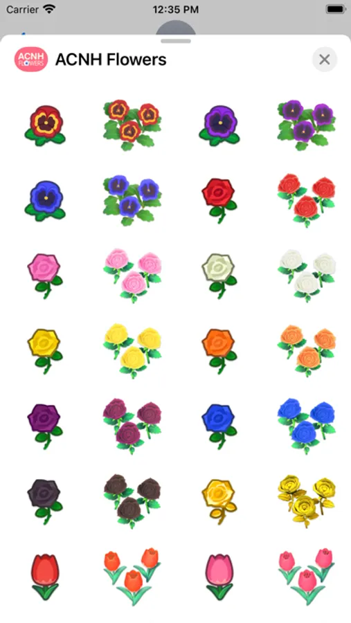 Decorate your messages with beautiful flowers from Animal Crossing: New Horizons — A total of 108 stickers for any style!