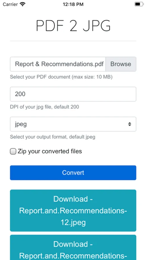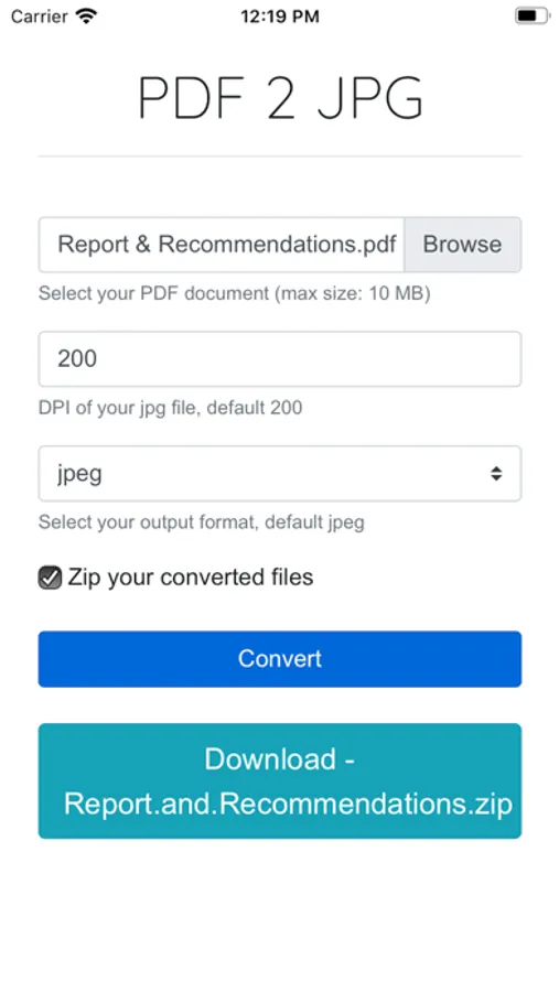 - Output format available : jpeg, tiff, png, gif, pdf, zip, txt.