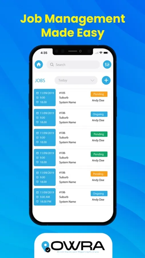 View your daily job list and check on upcoming jobs via the easy to use filter system.
