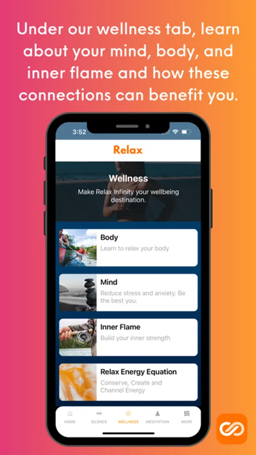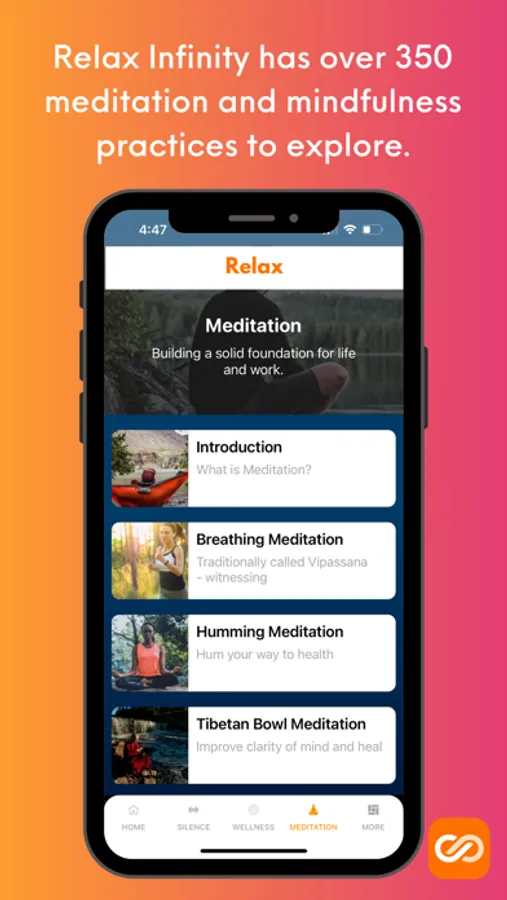 Relax Infinity is a wellness App for achieving peace, happiness, tranquility and relaxation through understanding of body, mind and the flame (of consciousness). Take a journey away from the mainstream to eliminate stress, reduce burnout, and learn the practice of mindfulness, intermittent silence and meditation… come back energized. ...