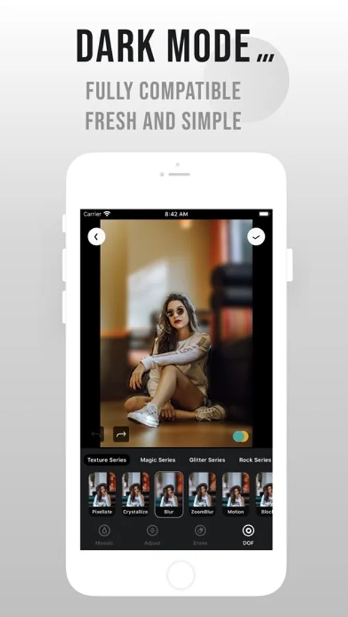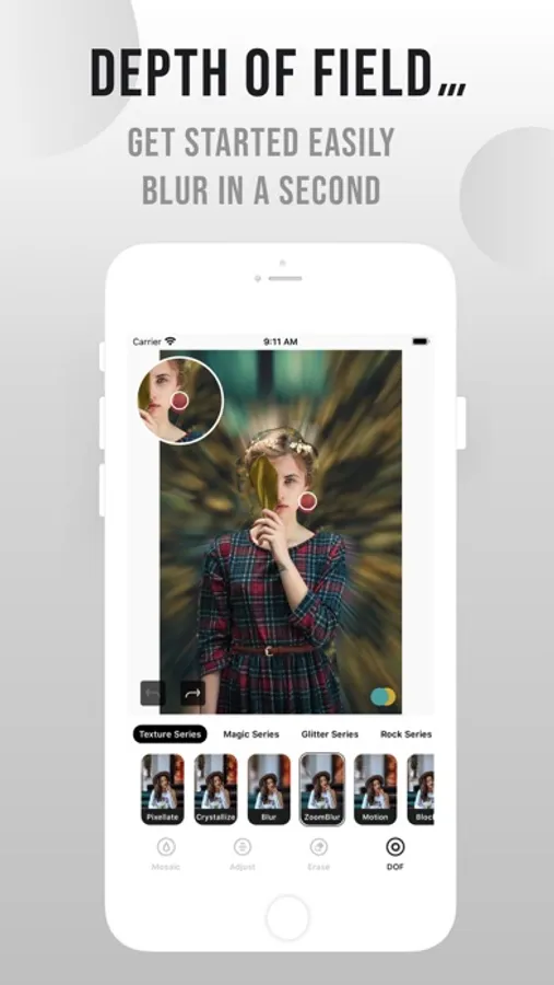 * Blur: Provides a simulated depth of field function to quickly focus and make the focus of the photo more prominent