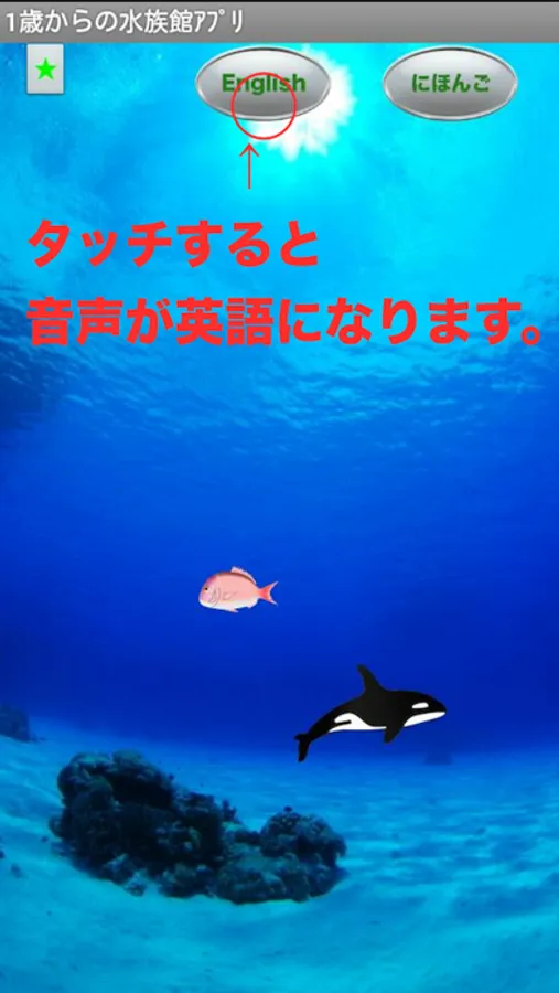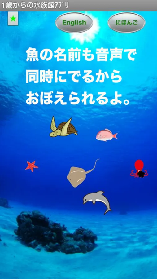 海中の画面をタッチすると、いろいろな海の生き物が音声とともに出現。