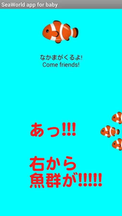 画面はどんどん水族館のようになります。単純で1歳から遊べるアプリです。