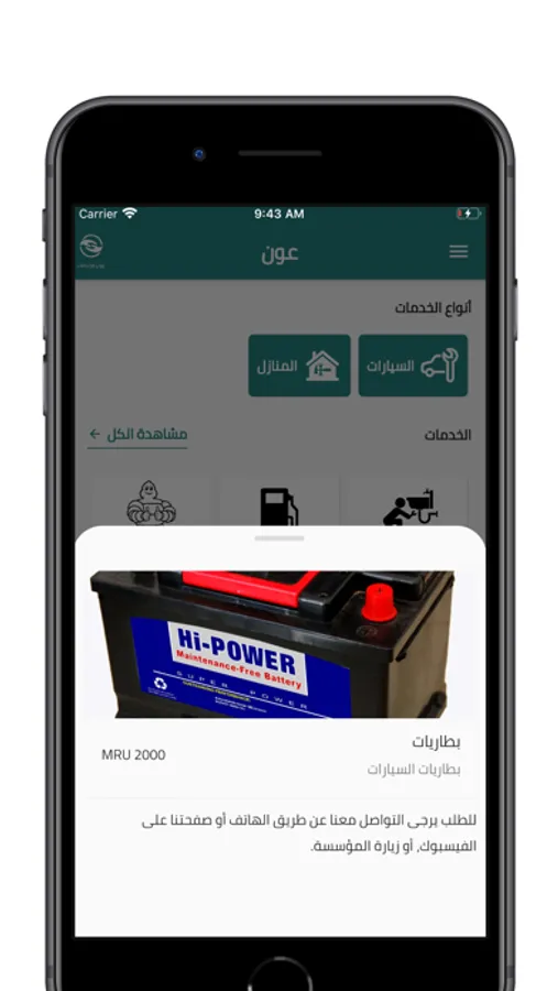 إننا في شركة العون للخدمات والصيانة نؤمن أن العالم يتجدد على الدوام، وأن الإستثمار في خدمة الانسان والمجتمع جزءً لا يتجزأ من قيمنا، وأن الخدمات الإلكترونية أصبحت الملاذ الأكثر ثقة ومرونة والأسرع في الإنجاز، ولذلك قمنا بإطلاق منصة رقمية تُعتبر الاولى في مجالها في بلادنا ، وذلك بإطلاق خمة ( عون ) للمساعدة على إصلاح الاعطال الطارئة للسيارت و أعطال الماء و الكهرباء المنزلية ، وبفريق عمل متميز أردنا عكس رؤيتنا من خلال تطبيق للهواتف الذكية يقدم الخدمات بشكل احترافي يواكب التطور الإلكتروني .