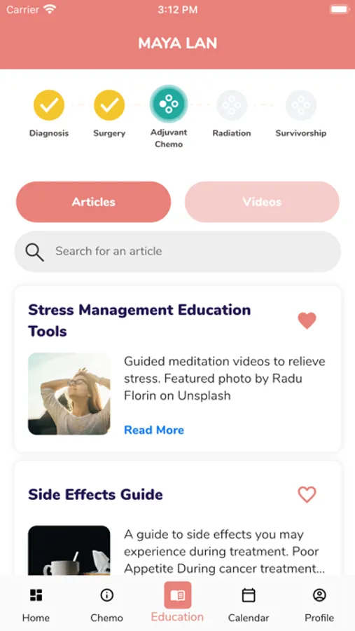- See personalized articles and videos uploaded by your care team