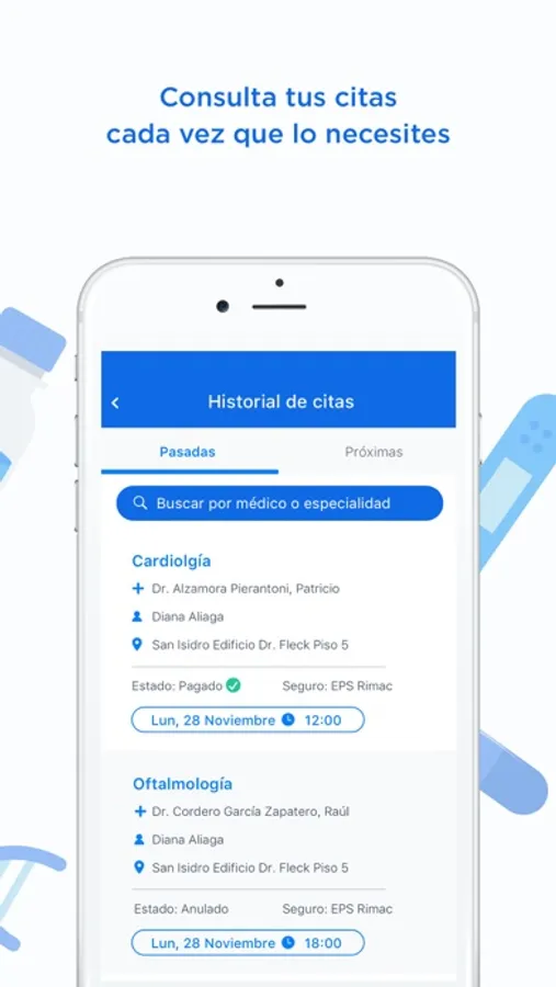 -Revisar tu historial de citas y agrupar a tus médicos favoritos
