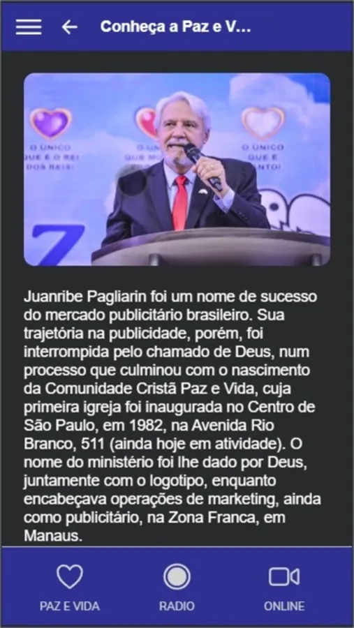 Aplicativo com conteúdo da COMUNIDADE CRISTÃ PAZ E VIDA.