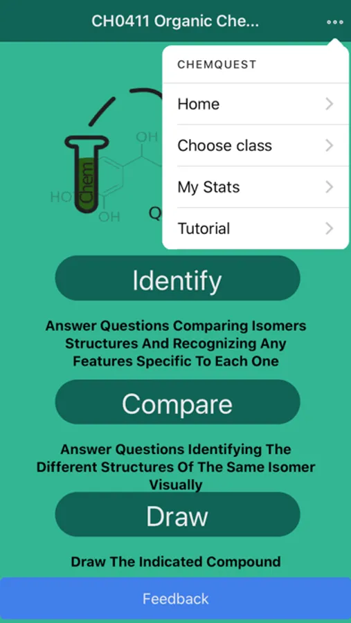 This is a companion application for students attending chemistry courses at college level. Through this application, students will be able to solve exercises and draw chemical compounds.