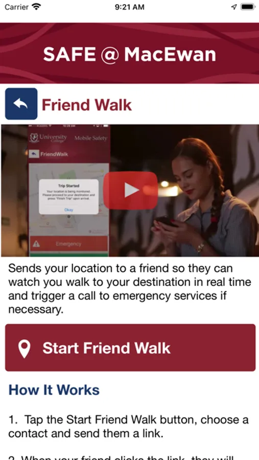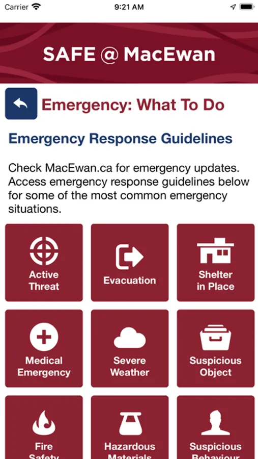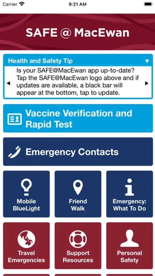 SAFE@MacEwan is MacEwan University’s official safety app, designed to provide students, faculty and staff with added safety on the MacEwan campus. Integrated with MacEwan’s safety and security systems, the app sends important safety alerts and provides instant access to campus safety resources.