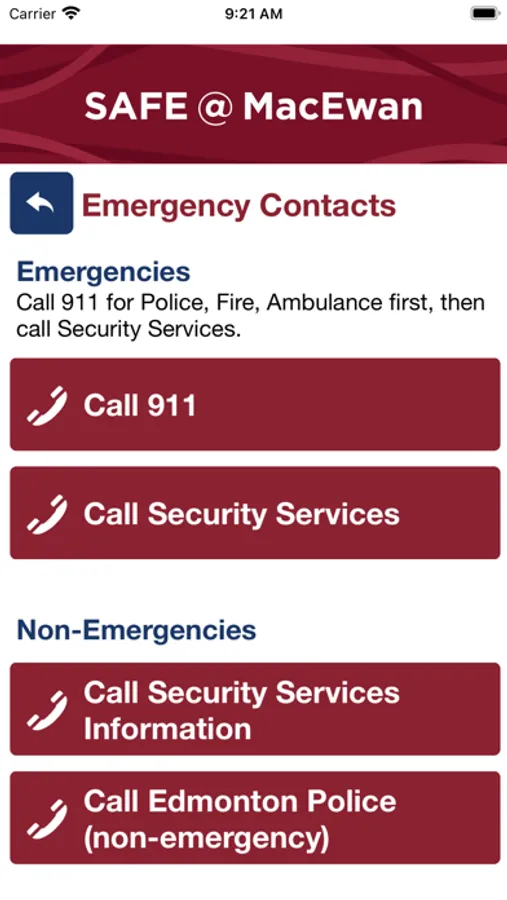 Emergency Contacts: Direct contacts for the MacEwan University area in case of an emergency or a non-emergency concern.