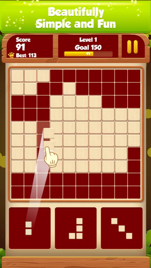 Put different shapes into 10x10 grid. Make full row or column to clear blocks. Clear more than 3 lines to get extra points.