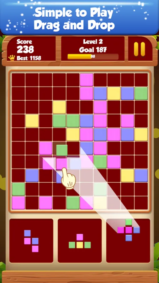 -It’s simple to play. Drag and drop shapes into board.
