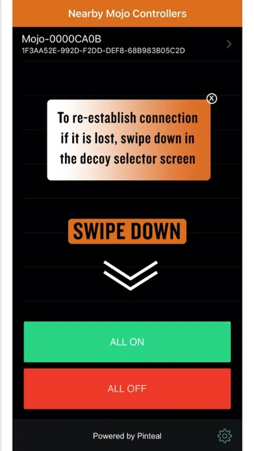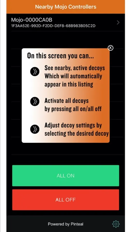 Upgrade your hunting experience with Mojo's decoy controller application. The app gives you the power to control over 10 spinning decoys from one phone! The app integrates with Mojo's Bluetooth controller which can be used to turn any decoy into a wireless controlled device - including the old decoys, no more remotes. Control the Hunt from your phone and elevate your spread today!