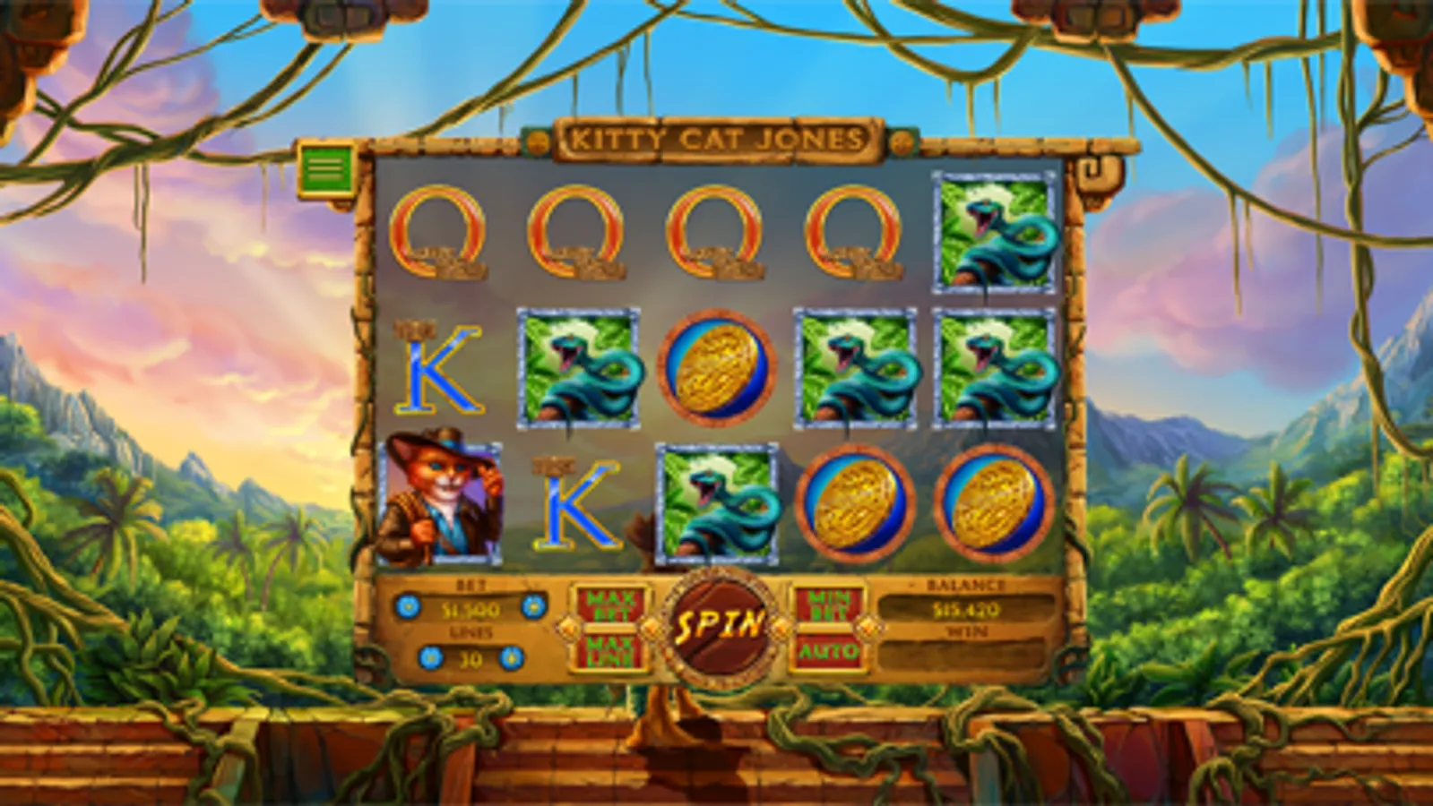 This Kitty Cat Slots Machine is the purrfect place to relax and go on an adventure with Kitty Cat Jones to find treasure!