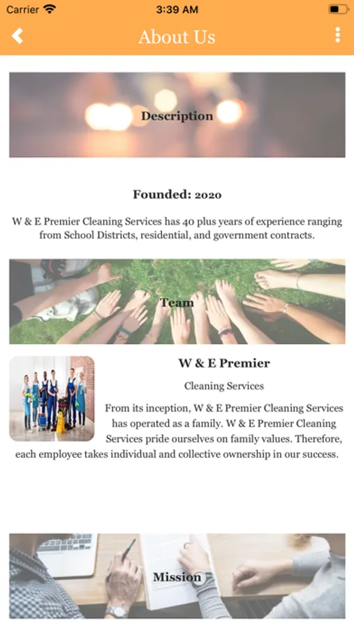 W & E Premier Cleaning Services has 40 plus years of experience ranging from School Districts, residential, and government contracts. This platform is to allow our end users access to their jobs and potential clients to inquire about new jobs or estimates. Our goal is to provide a convience for all of your cleaning service needs!
