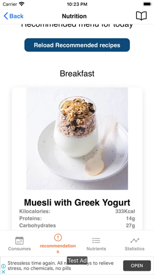 * Request the application to show you recipes that you might like, based on the food tastes it has learned from you ("Recipes" section).