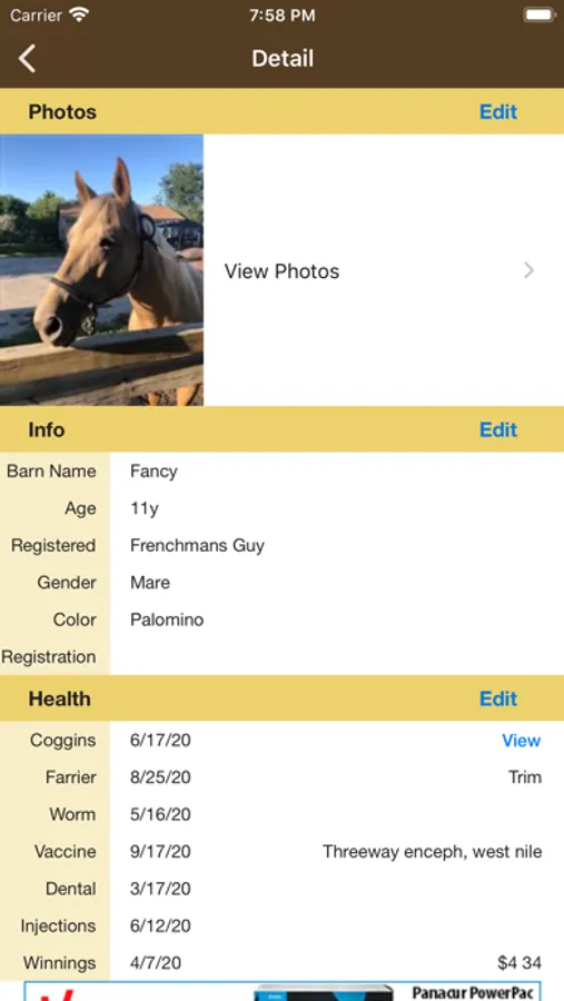 You never have to forget about your horse’s information again. Enter it from your phone when you are in the barn. Done! This app is great for pictures, descriptions, feeding instructions, worming, etc. Even tracks your vets contact information.