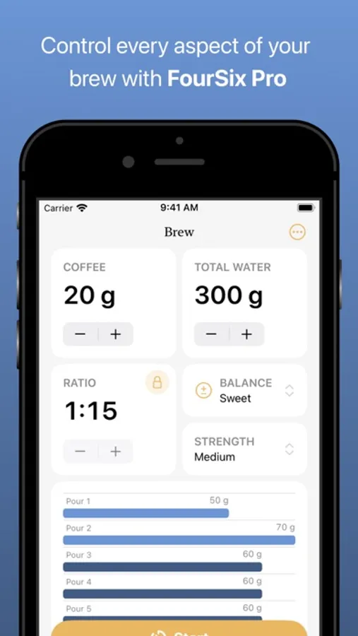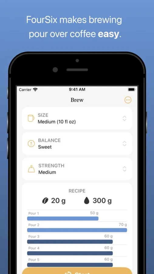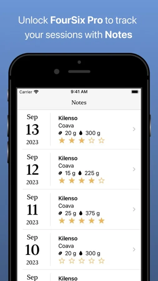 If you like FourSix, but want even more control over the recipe, you'll want FourSix Pro. A one-time, in-app purchase gives you extra settings so you can dial in your perfect brew exactly how you like. In addition, new in version 2.0, you can store details about your brews in Notes, including a rating, brew temperature, grind size, and the kind of coffee beans used.