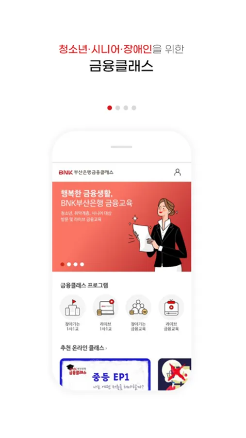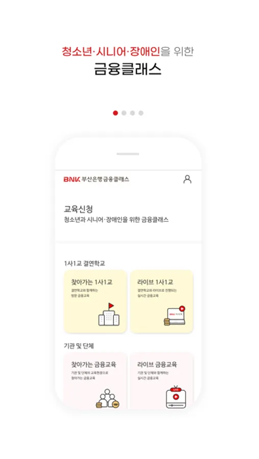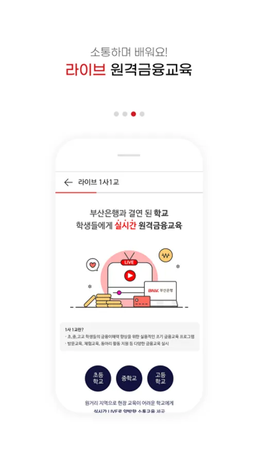 BNK부산은행의 방문 및 라이브 금융교육을 모바일을 통해 신청하실 수 있습니다.