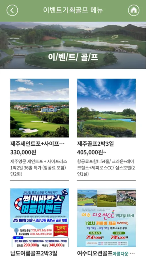 골프여행전문 업체인 오케이골프 [더존투어] 에서 국내골프여행을 선보입니다. 그간 저희는 해외골프여행 전문업체로 해외의 많은 골프장을 발굴하고 경쟁력있는 상품을 기획해 서비스 해 욌습니다.