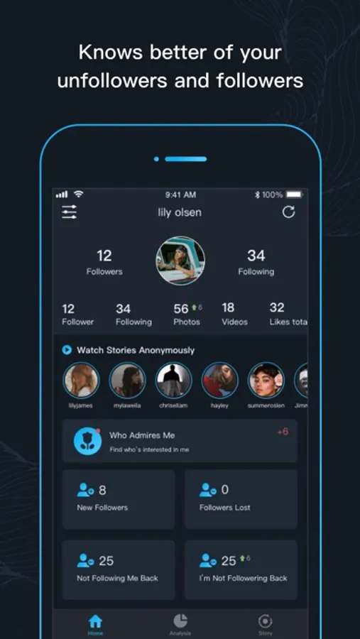 Followers for Ins Analyzer is a user analysis tool used to track your gained and losted fans, and can also analyze like and follow.