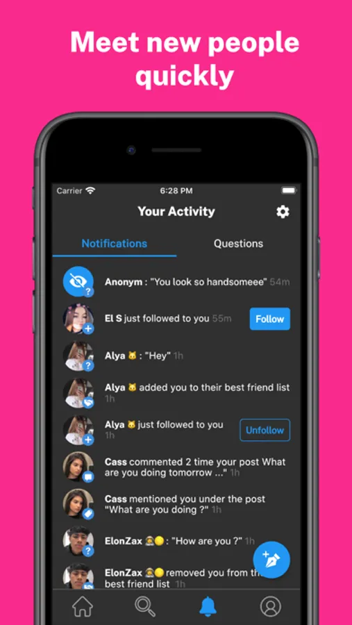 Share your questions link across all networks, so anyone can send questions to each other without even having the app.