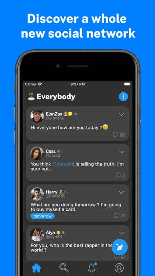 Create posts, mention your friends, add a subject (all posts of the same subject are grouped).