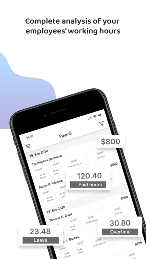 * Safe data storage and detailed time log to protect you against labor disputes and audits