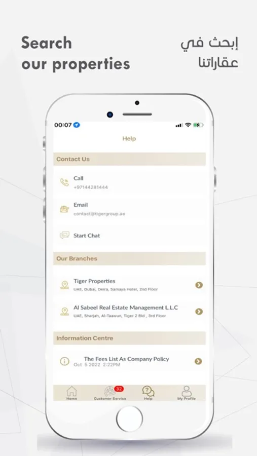 يعتبر تطبيق تايجر لخدمة العملاء منصة رقمية موحدة لجميع خدمات العميل لنقدم خدماتنا لعملائنا الكرام بشكل أفضل وأسهل.