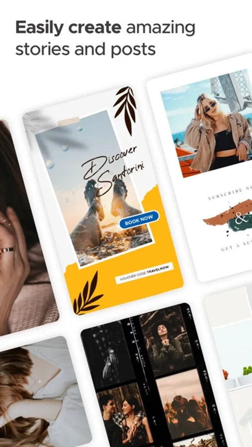 Forget about the times when you had to go through tons of data and images searching for inspiration, everything is ready in one app! Choose preferable canvas size for your favorite social media, add borders to photos, frame them with gorgeous handy tools. Add text with outstanding fonts, combine with stickers and let imagination guide you! You can apply filters, add handcrafted stickers and texts with variety of effects effortlessly. You can choose among ready to use special templates and publish them within seconds just by adding your photos.