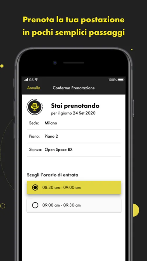 Conferma la prenotazione e ricordati di scansionare il QrCode sulla postazione al tuo ingresso