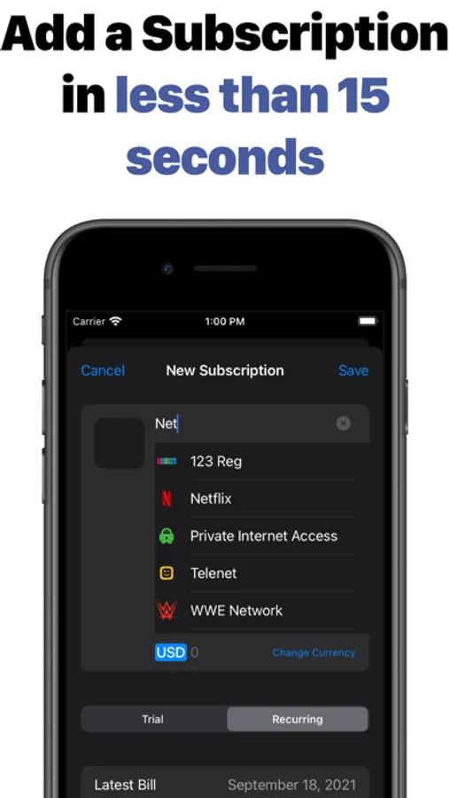 - Add subscriptions from a pre-added list of 300+ Subscriptions or add custom subscriptions. Takes less than 20 seconds.