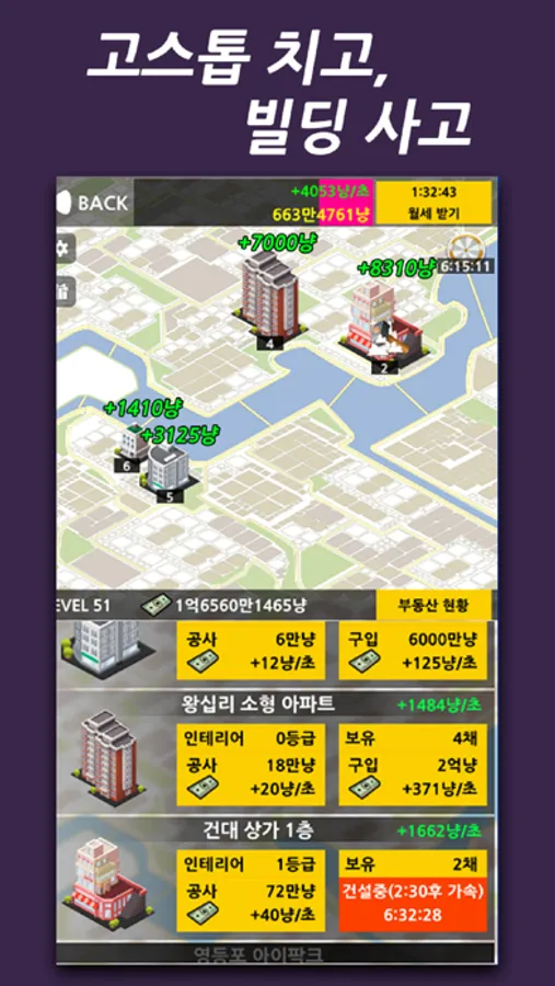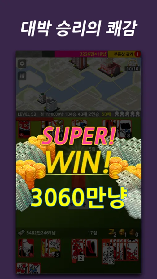 고스톱에서 획득한 돈으로 빌딩을 건설하고,
