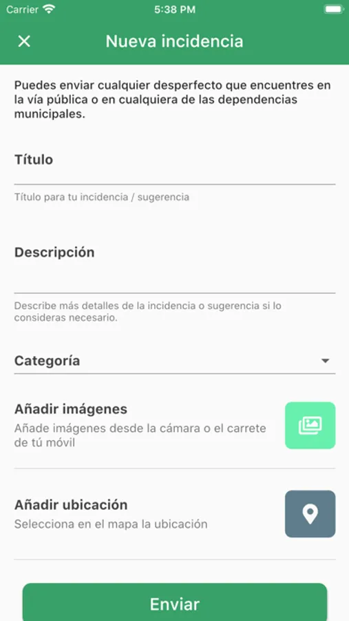 Envío de incidencias y sugerencias con imágenes y geolocalización.