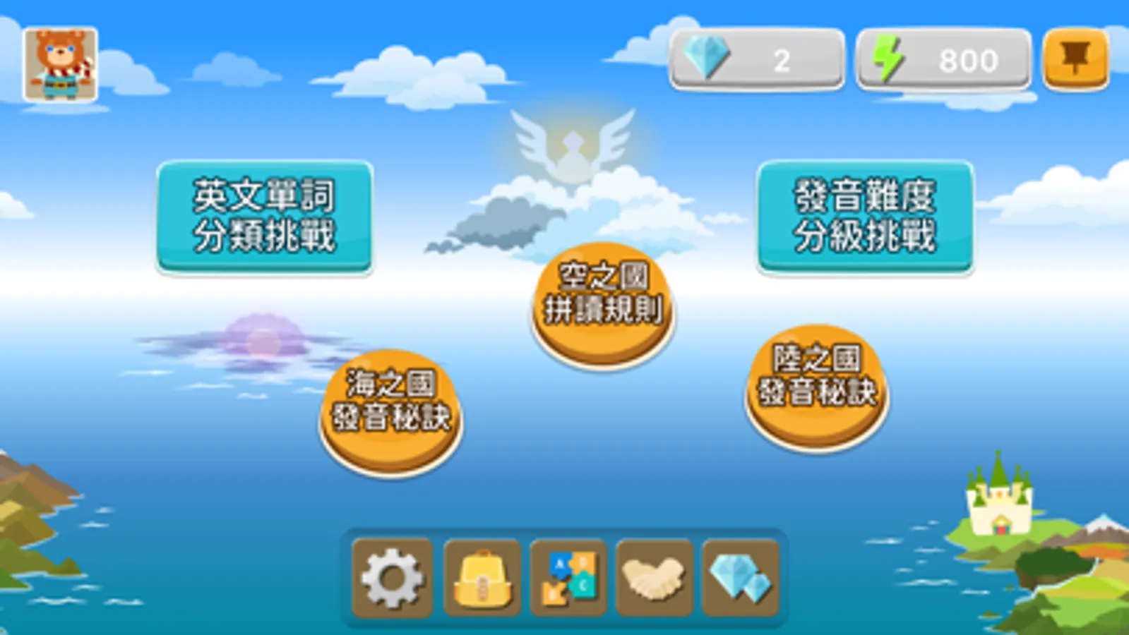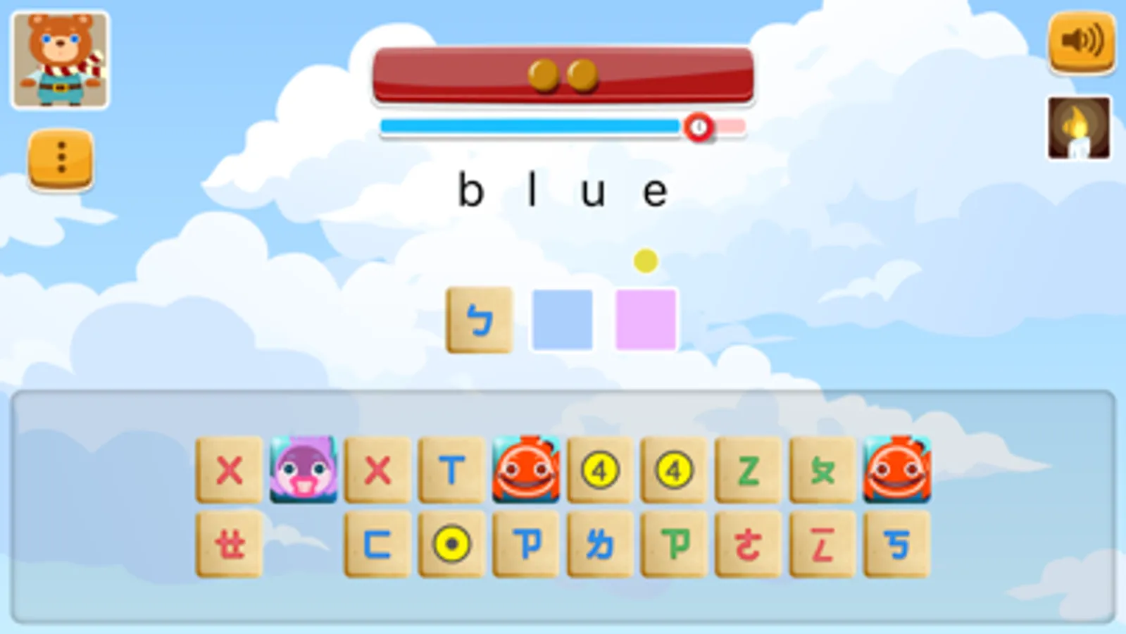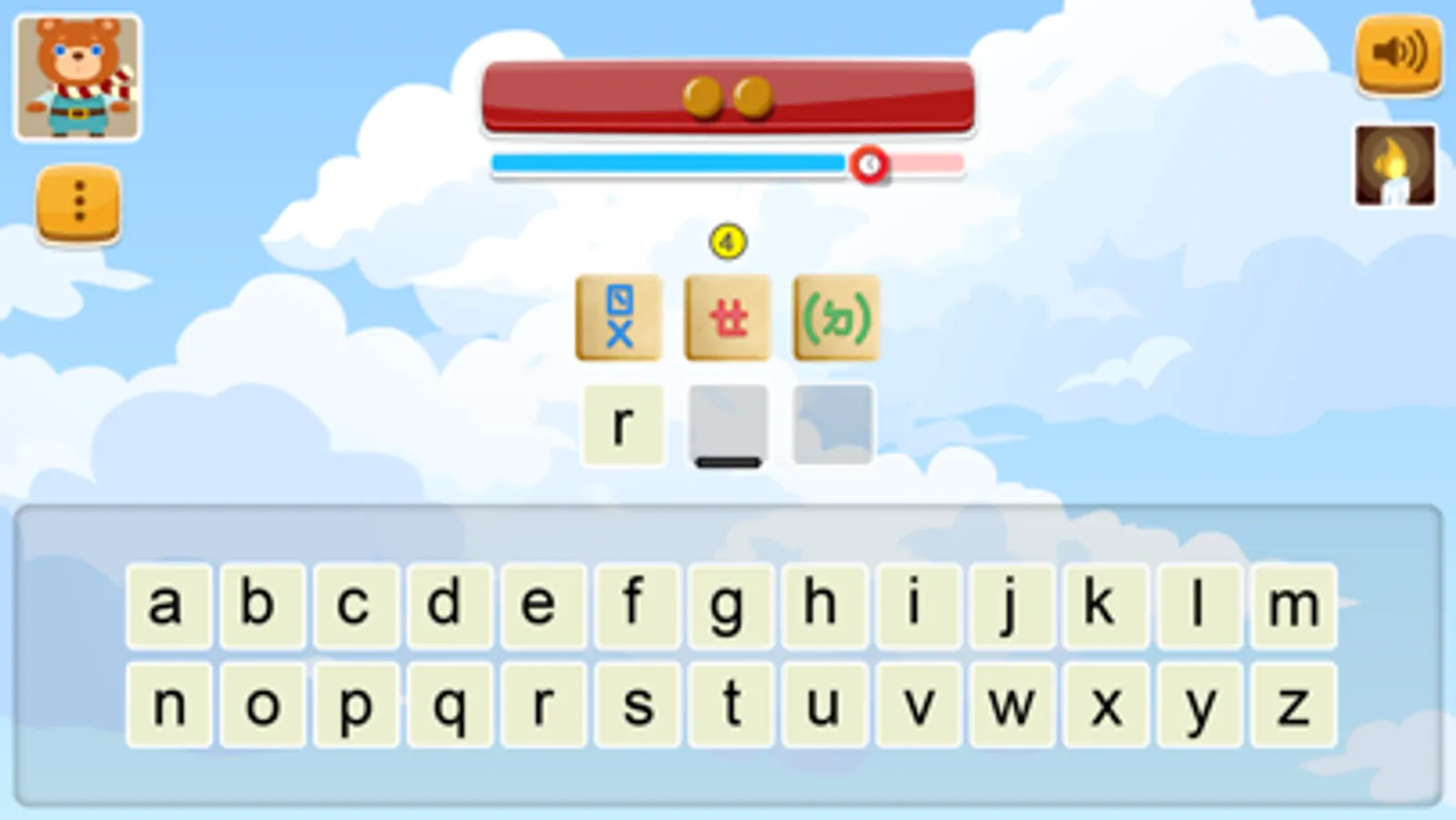 拼音熊遊戲共有三個國度,前兩個國度規劃就是先學拼音系統,讓學習者先完全掌握美語的拼音 (聲音) ,最後一個國度再學拼字規則。