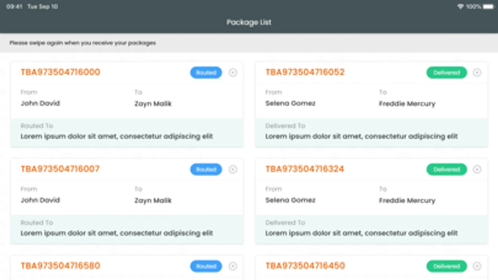 Packages to be picked up display on both the Kiosk, the mailroom user’s QTrak App, and Smart TV that can access a specific URL