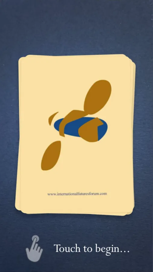 The IFF Prompts share the experience of the International Futures Forum (IFF) in taking on complex, messy problems in the real world. Each card – with both a statement and a picture – suggests what we might look for, appreciate, value, pay attention to; or how we might behave, show up and take action when we encounter complex or confusing circumstances. The App allows you to shuffle the full deck and select a card at random any time you need a shot of imaginative inspiration, future-focused thinking or an unconventional suggestion as to how to proceed.