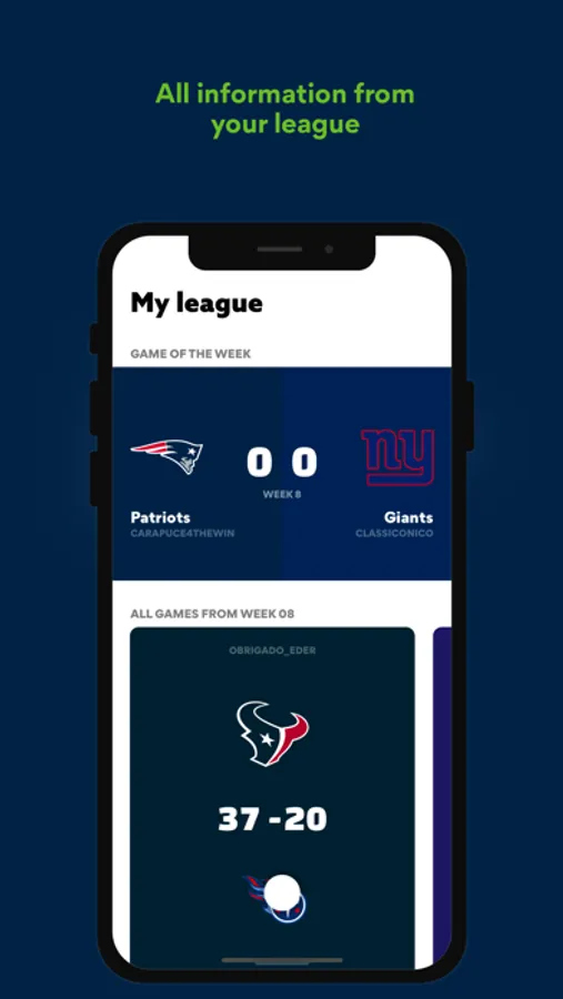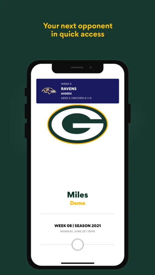 Personalized according to your team, the application is useful for a bunch of stuff: the current week, your next opponent, your entire schedule, the game of the week, all the games of all the weeks, the standings, the list of all teams…