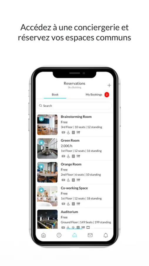- book seats and meetings / event rooms,