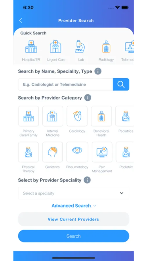 · Search for available providers within a certain radius using different criteria that best fit your needs.