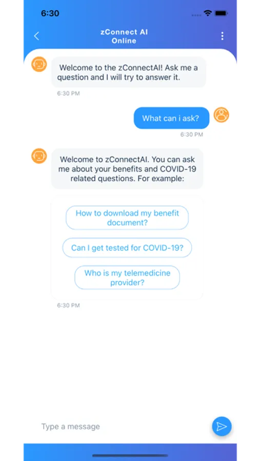 · Get your questions instantly answered regarding your health and benefits through our Artificial Intelligence (AI) powered chatbot.