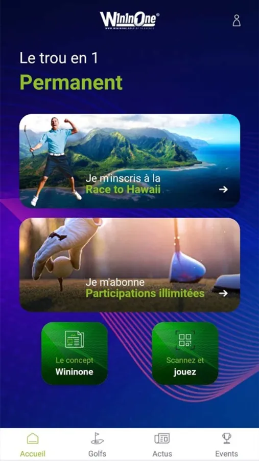 L'abonnement vous permet de tenter le Trou en 1 sur tous les golfs équipés Wininone sans droits de jeu supplémentaire. D'ici fin 2021, plus de 80 golfs seront installés en France et en Europe.