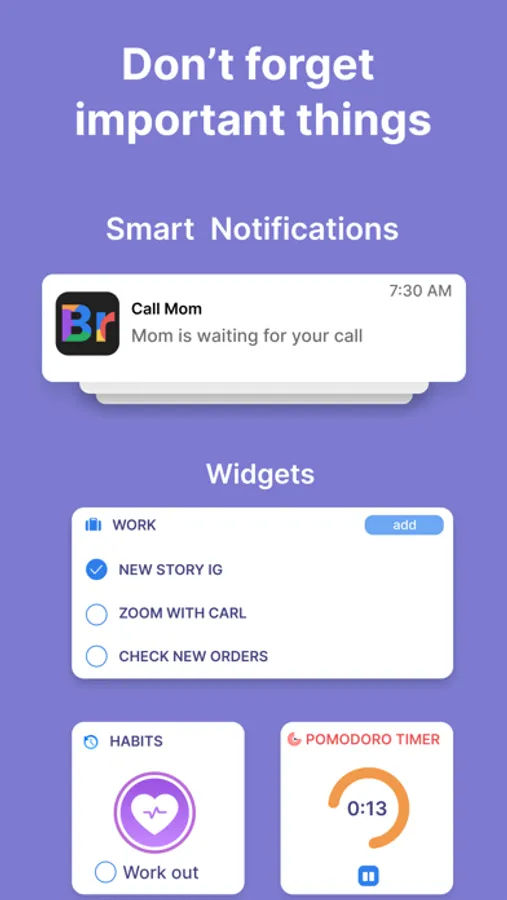 By using Brite Daily Planner, you'll no longer need to switch between multiple apps and lose focus. Everything you need for a productive workday and a happier life is right at your fingertips.