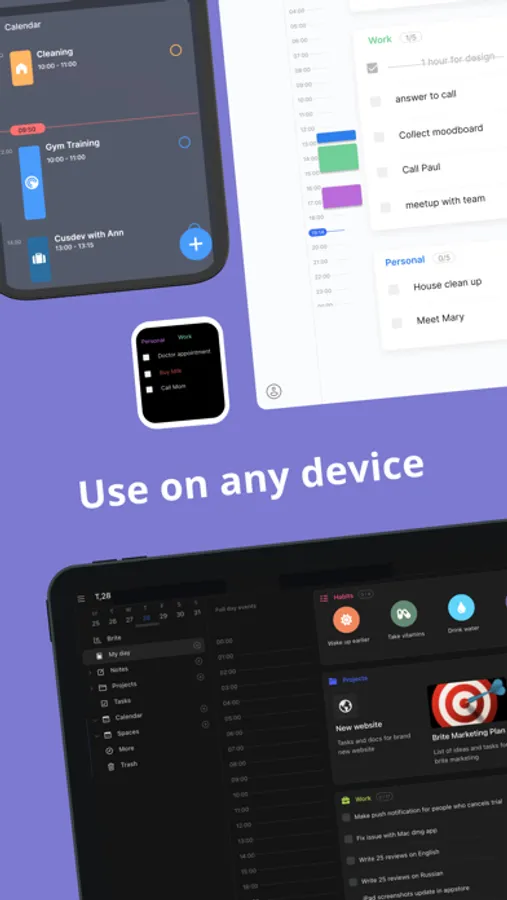Brite Daily Planner is available on iPhone, iPad, Mac, Apple Watch, and the Web, allowing you to manage your productivity from anywhere.