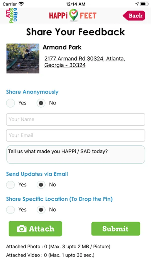 Users can add images and / or videos along with text detailing issues to report (dirty facilities, vandalism or other safety issues, graffiti, bad signage, poor lighting) or areas to praise (great customer service, friendly staff etc.) for individual locations.