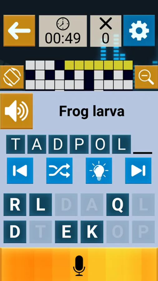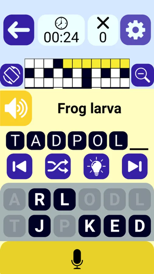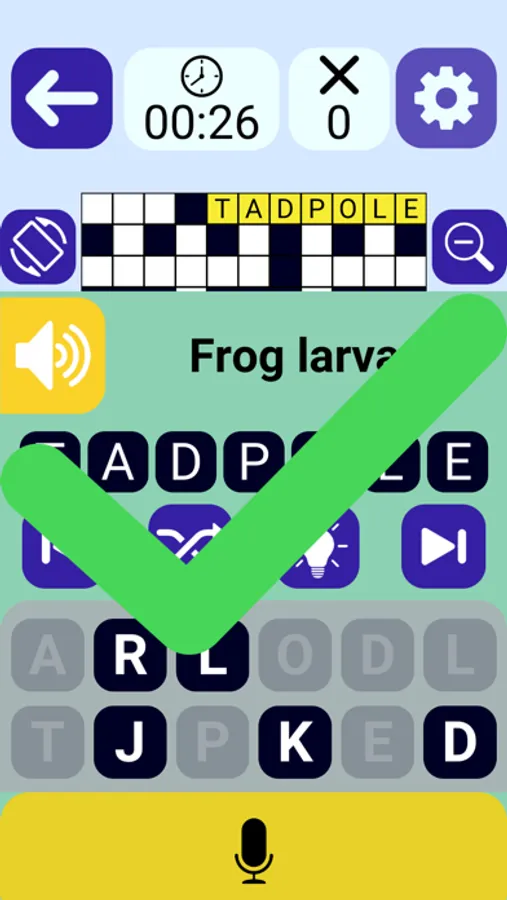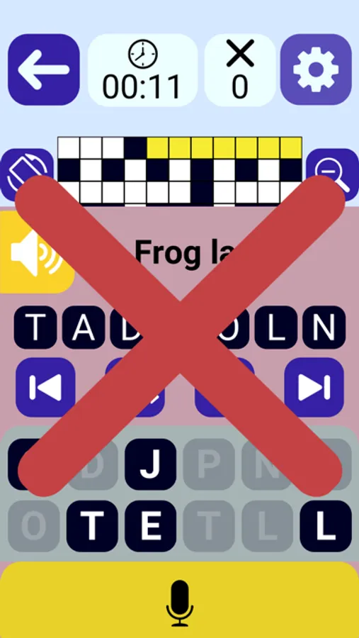 Play crosswords without using any tactile action. The screen becomes the on/off button to activate the microphone and exchange with the vocal assistance