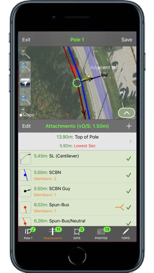 o kmz Google Overlay (which includes embedded photos and pole structure attribute rake-offs)
