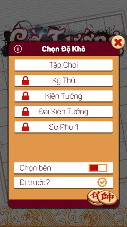 - Chọn bên đi tiên