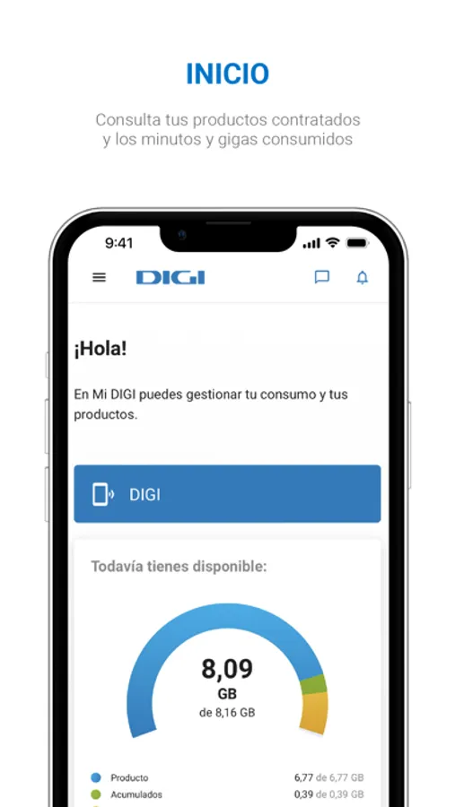 Descarga Mi DIGI y gestiona tus productos y servicios de forma más visual e intuitiva.