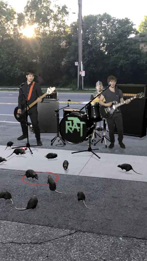 Tap to place the the marker and the band will appear right in front of you and give you an interactive performance that you'll never forget. Hit the record button to take a video of your experience and share it on social media. Tap the rat button to spawn additional rats that will roam around and watch the show with you.